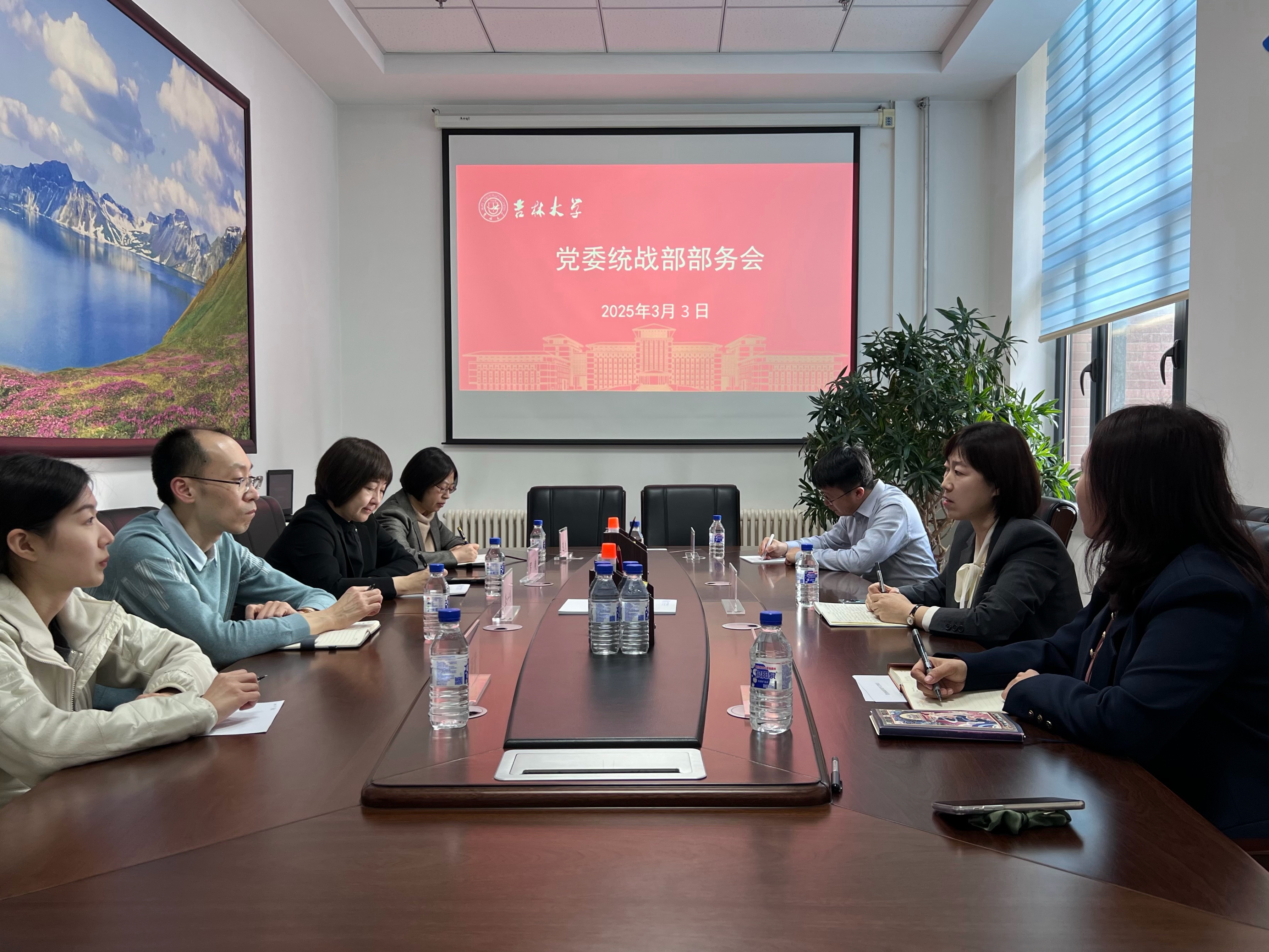 为深入贯彻落实学校党委办公室安全稳定工作会议精神,切实筑牢校园政治安全与意识形态安全屏障,3月3日,党委统战部召开部务会,传达学校有关会议精神并部署相关工作任务。统战部全体人员参会,常务副部长苗艺璇主持会议并讲话。