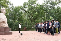 16日上午吉林大学第五期党外代表人士培训班举行了开班仪式。焦裕禄干部学院教务部副部长明洋、吉林大学党委组织部副部长鲍锋、培训班班长吉林大学电子科学与工程学院教授张大明分别进行了动员讲话。开班仪式后,学员们冒着蒙蒙细雨来到焦裕禄烈士墓敬献花篮,深切缅怀县委书记的榜样、共产党员的榜样焦裕禄同志。